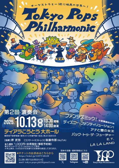 ☆ Live・Event & Ticket ☆ 注目のコンサート情報をご紹介します。 週末のお出かけやご予定の参考に、ぜひご覧ください。 Tokyo Pops Philharmonic 第2回演奏会 2025年10月13日(月) 14:00開演 ■詳細: https://teket.jp/11077/48129 ![]() ティアラこうとう 大ホール(東京都)入場料\1,000 第2回演奏会は10/13(月祝)開催! Tokyo Pops Philharmonicは2024年創団のアマチュアポップスオーケストラです。 「音楽をもっと身近に」をテーマに、映画音楽を始めとしたポップスをフルオーケストラで演奏 します!今回は、ファンタズミック!(東京ディズニーシー・ナイトタイムショーより)の委嘱 編曲初演を行います。また、ディズニー社より公式の楽譜をお借りし、ディズニー・ファンティ リュージョン!の楽曲も演奏します。お楽しみに! 湖畔サロンコンサート:おかげさまでご好評を頂きました。ありがとうございました。 どっぽ サロンコンサート 盛況のうちに終了しました。ご協力下さった皆様ありがとうございました。 ◇次回に向けてリクエストなどあればお寄せください。→ ![]() お問合せ:喫茶「どっぽ」 東大和市 南街 1-19-5 TEL 042-565-5182 ぎたろー演奏動画 ![]() ■楽市楽座からのお知らせ キリコと長山の二人旅、二人芝居。北は北海道から南は沖縄まで、野外劇の魅力を伝えます! ※入場無料・投げ銭 全席自由 雨天のみ客席に竹骨テントを設置 野外劇団 楽市楽座 ◇16周年旅公演「みちばたの花」 2025年5月〜11月 ![]() *今年度は旅16周年。スケジュールはサイトでご確認ください↓ 主催:野外劇団 楽市楽座 〒532-0012 大阪市淀川区木川東2-8-26 ![]() ![]() ![]() ![]() ![]() ![]() 教室関連動画→ ![]() ◇当サイトに寄せられた感想や口コミはこちら◇ ギター教室 東京 多摩 東大和市のギター教室 ギター上達法 エレキギター アコースティックギター クラシックギター ポップス弾語り タブ譜作成 F.Fギター楽譜 F.Fテーマ ザナルカンドにてバンド支援 ギター練習のコツ 荒居ギター教室 デビュー支援 バンドサポートDTM 教材作成 ギターコードの 覚え方ギター指導 ギター バレー(セーハ)のコツ ギター初心者向け ギター中級者向け ギター上級者向け練習法 バックトラック作成 アランフェス カラオケ ギター教則本 早期教育の問題点立川周辺のギター教室 PCで音楽制作 インターネットレッスン オンラインレッスン 中高年のギターレッスン Ally Teacher |